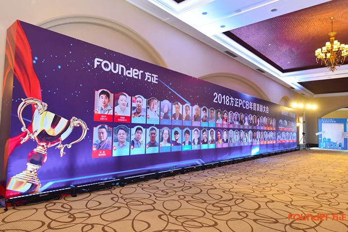 方正PCB年度表彰大会已圆满落下帷幕,接下来就跟着小编的镜头来回顾一下当天的都有哪些精彩看点。下午4点30分参加年度表彰大会的人员开始陆续进场,在会场通道首先映入眼帘的是方正PCB 新智能化工厂(F7)的筹建日志,我们新智能化工厂(F7)已成功完成首层底板的筹建,且二层板也已完成50%,方正PCB始终着眼布局未来,通过建设智能化工厂,更进一步提高人均效率,确保产品品质,抢占5G时代的发展先机;紧接着看到是由500个灯泡拼成的FOUNDER字样墙,发光的FOUNDER字样仿佛指引着我们前进的道路的灯塔;最后来到的是方正PCB年度优秀员工荣誉墙,星光熠熠,是当天会场通道里最靓丽的风景线,在荣誉墙正对面是签名墙,参会人员签名后便进入会场大厅!