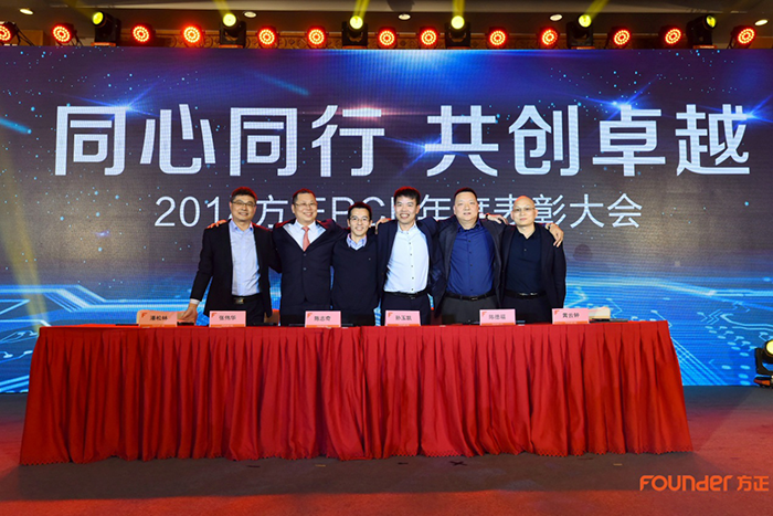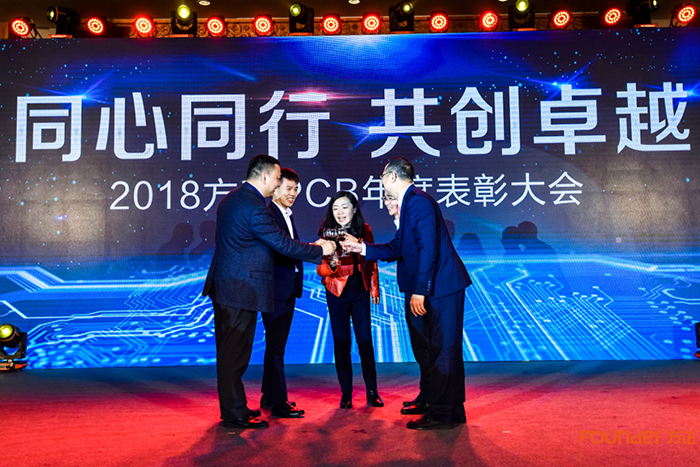 冬去春来新年伊始,小荷才露万象待新。辛劳务实喜获硕果,改革创新再造佳绩。表彰环节结束后,方正信产集团代理CEO 左进女士及总办成员上台举起了象征着希望与祝福的红酒杯,预祝方正PCB2019年事业红红火火,一饮而尽。