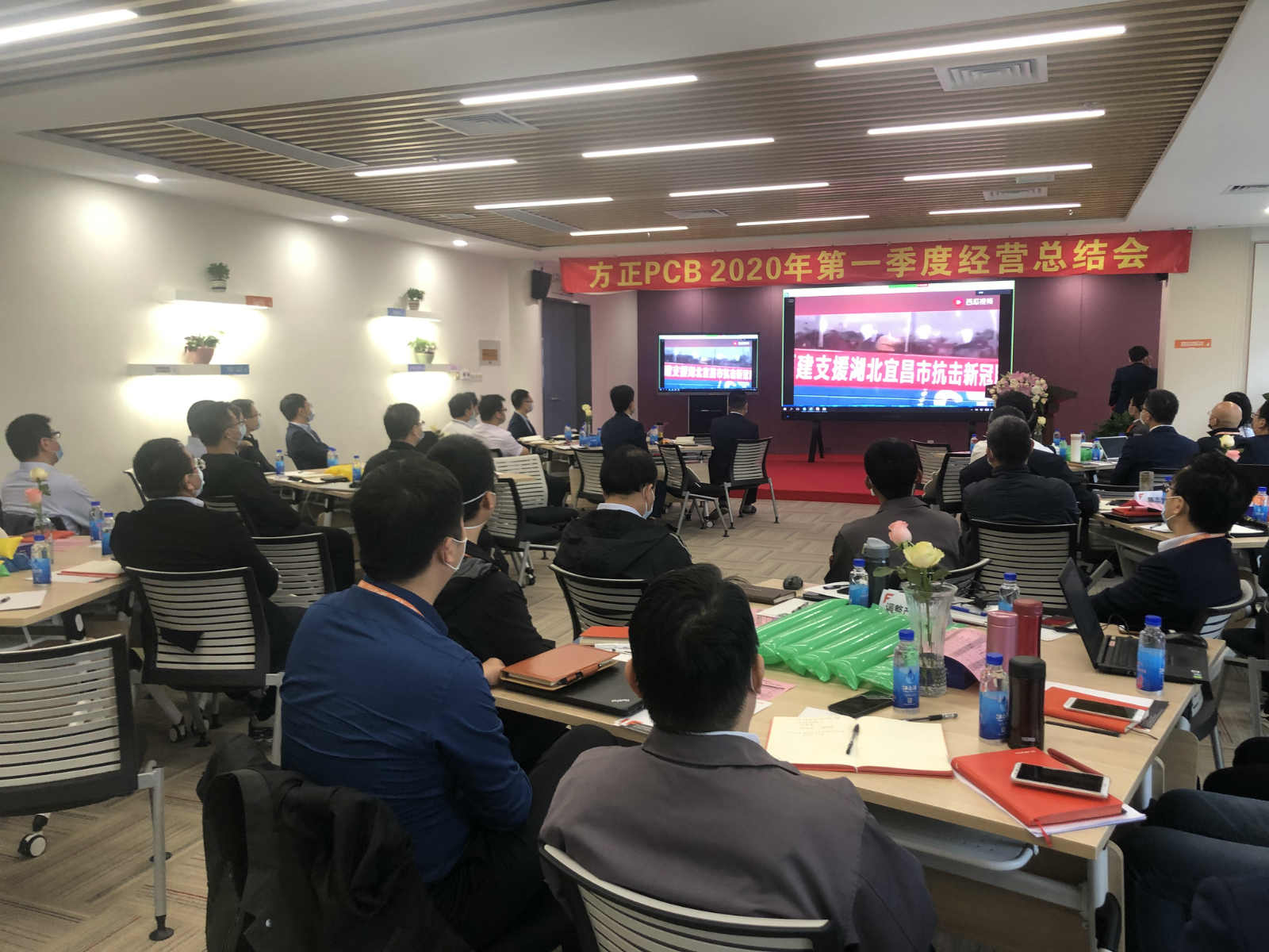 在听取各职能部门负责人的汇报后,方正PCB总裁孙玉凯首先肯定了一季度的经营业绩,并对在各环节做出努力的员工表示感谢。他表示,基于目前整个市场环境的不稳定性,方正PCB要精诚团结,在疫情面前死守严防,持续做好防疫工作,保障生产经营的顺利进行。同时,要抓住机遇,逆势增长。受疫情影响,终端消费类电子的订单量已出现下滑趋势,但国内5G建设进程和5G智能产品的应用需求已逐步回暖,要积极部署,迎接5G市场的复苏。此外,方正PCB还将通过旧厂改造、购置设备、加快新厂建设等举措持续提升产能,帮助客户抢占市场高地。最后,孙玉凯希望方正PCB全体成员能够上下一心,在集团及当地政府的支持下,群策群力解决当下的问题,在保证完成基本目标的前提下,奋力向前,再创佳绩。